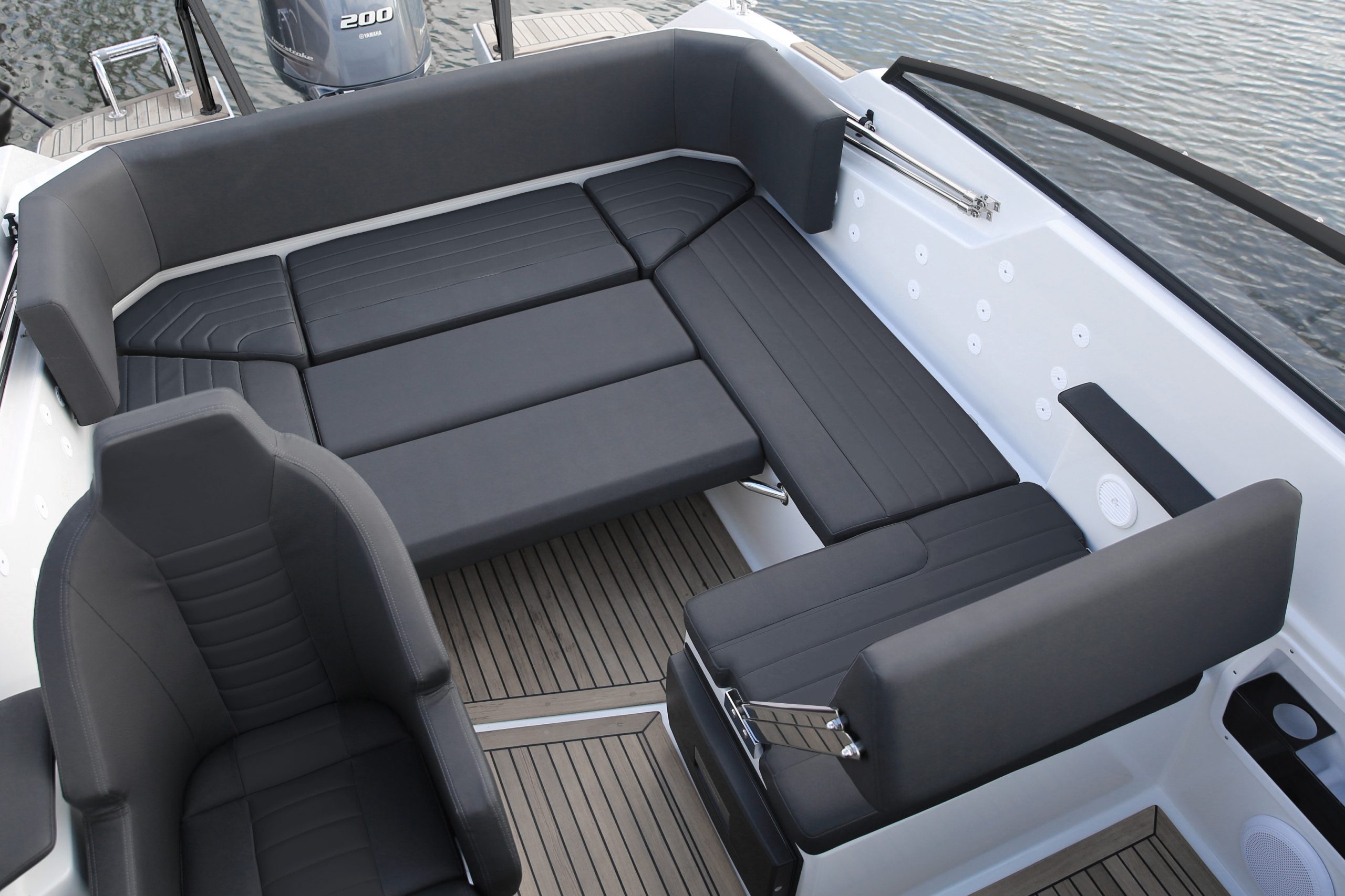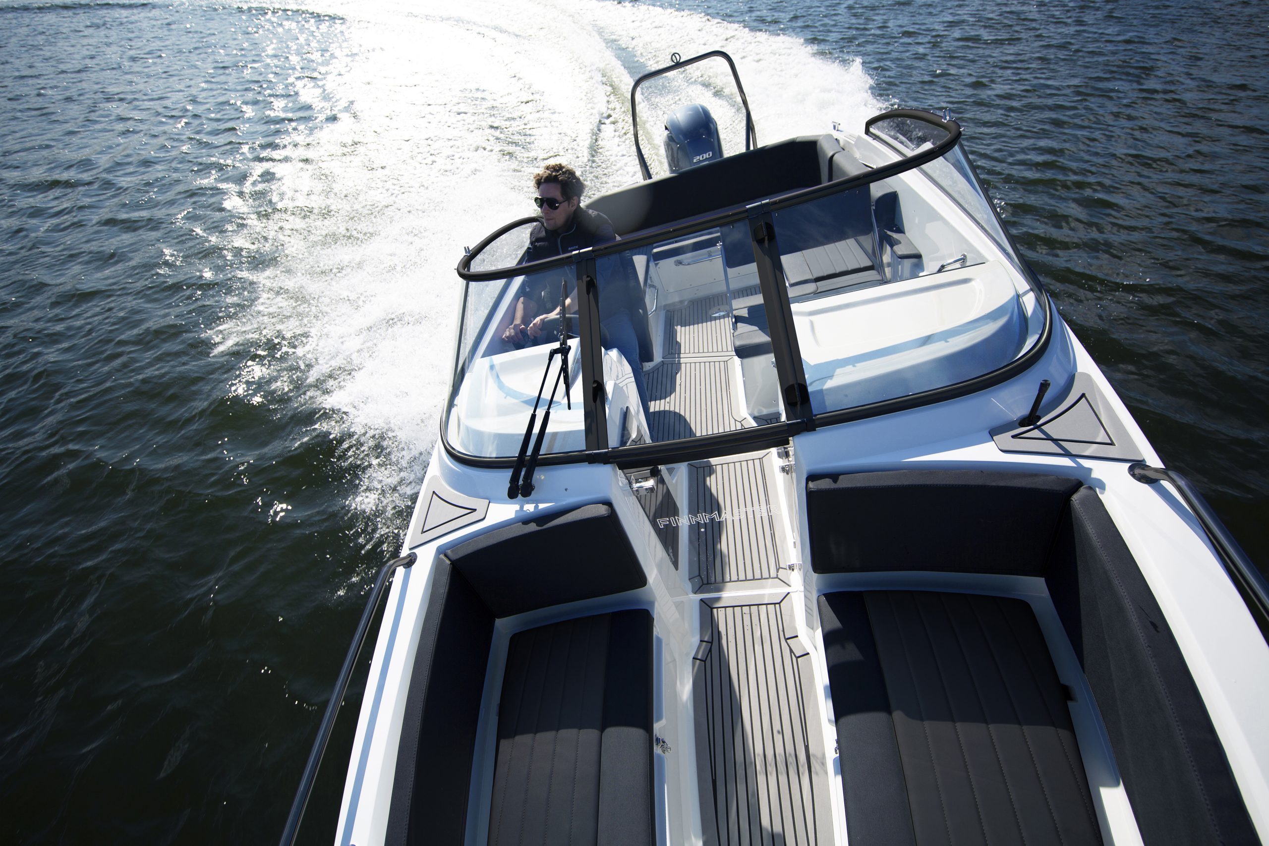 Finnmaster R6 on monipuolinen bow rider aurinkoisiin kesäpäiviin. Tämä vene soveltuu erinomaisesti päiväveneilyyn, vesiurheiluun, kesämökki- ja yhteyskäyttöön. Tässä bowriderissa on helppo liikkua, runsaasti mukavia istumapaikkoja rentoon oleskeluun, joko takaosan suurella U-sohvalla, tai keulan istuinryhmässä. Lisäpatjojen ansiosta saat muodostettua aurinkovuoteen kumpaankin istuinryhmään. Penkkien alta löytyy runsaasti säilytystilaa vaikkapa vesisuksille sekä monta järkevää yksityiskohtaa, jotka tekevät veneilystä helppoa ja turvallista koko perheelle. Finnmaster R6 on täydellinen kesävene, joka auttaa sinua irrottautumaan arjesta.