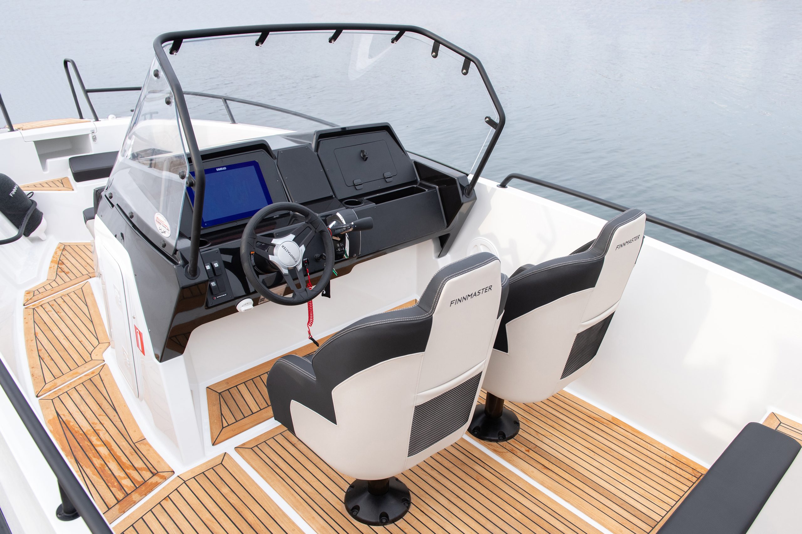 Finnmaster S6 on moottorivene, jossa yhdistyy urheilullisuus ja innovatiivinen muotoiluelämys. Tämä pulpettivene on täydellinen kumppani aurinkoisille kesäpäiville saaristossa. Veneen etuavotilaan on sijoitettu viihtyisä istuinryhmä, jonka voi helposti muunnella aurinkotasoksi. Leveässä pulpetissa on virtaviivainen tuulilasi, joka suojaa mukavasti matkustajia tuulelta kovassakin vauhdissa. Finnmaster S6 on maustettu monilla Smart Design -ratkaisuilla: kuten turvallisilla askelmilla, jotka helpottavat veneeseen nousua, käytännöllisellä lepuuttajan telineellä sekä tilavilla säilytysratkaisuilla, joihin mahtuu kaikki mitä tarvitset päiväretkeä varten. Keulan LED-valojen loiste johtaa sinut kohti loputtomia seikkailuja merellä.